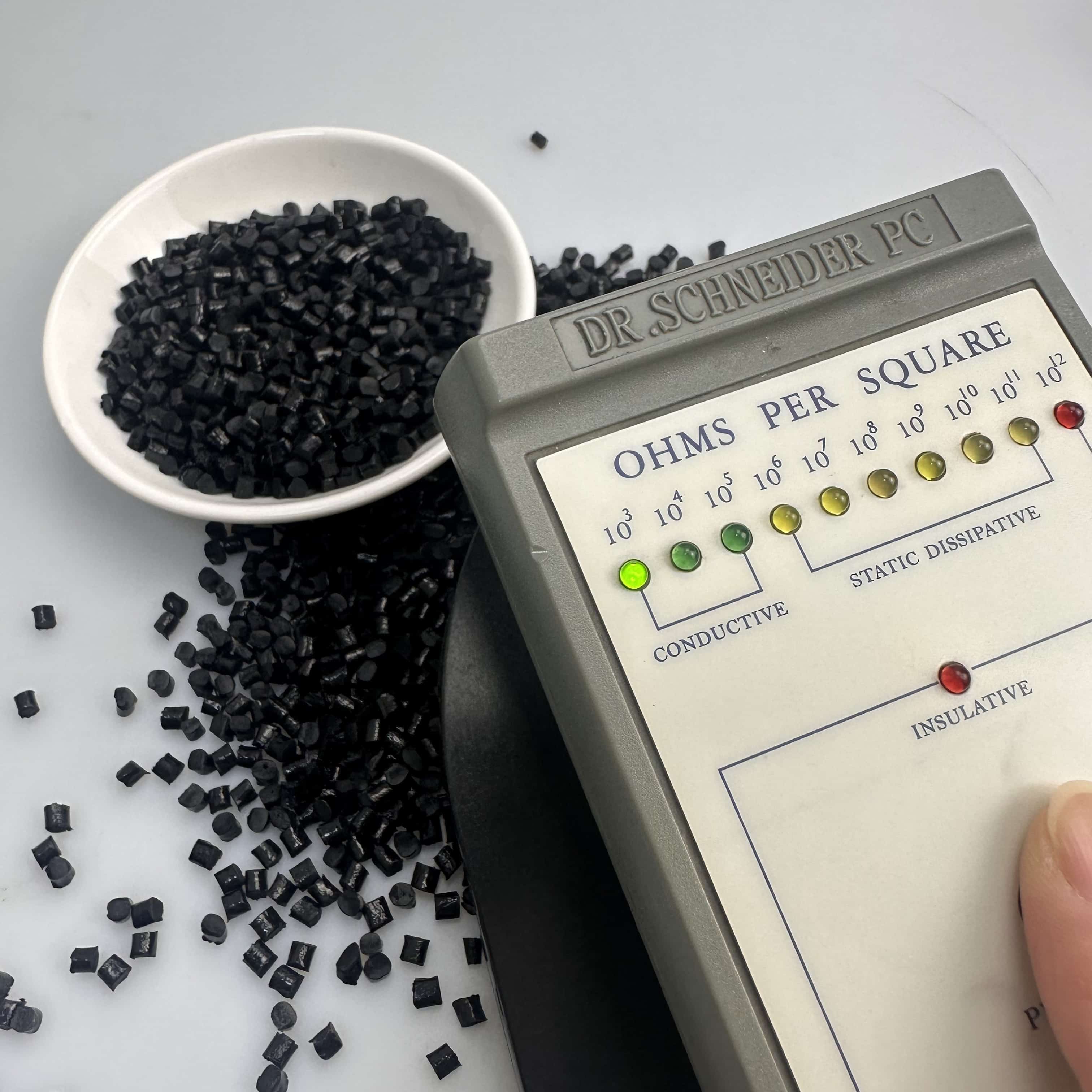 PA6碳纤增强15%的材料,具有高强度、耐高温、导电的特性。表面电阻稳定10的4-5次方。